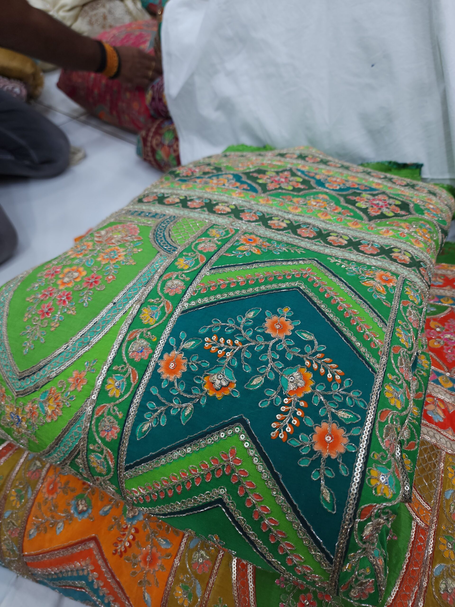 2 reviews for Banarasi Style Brocade Silk Fabric with Floral & Geometric Weaves