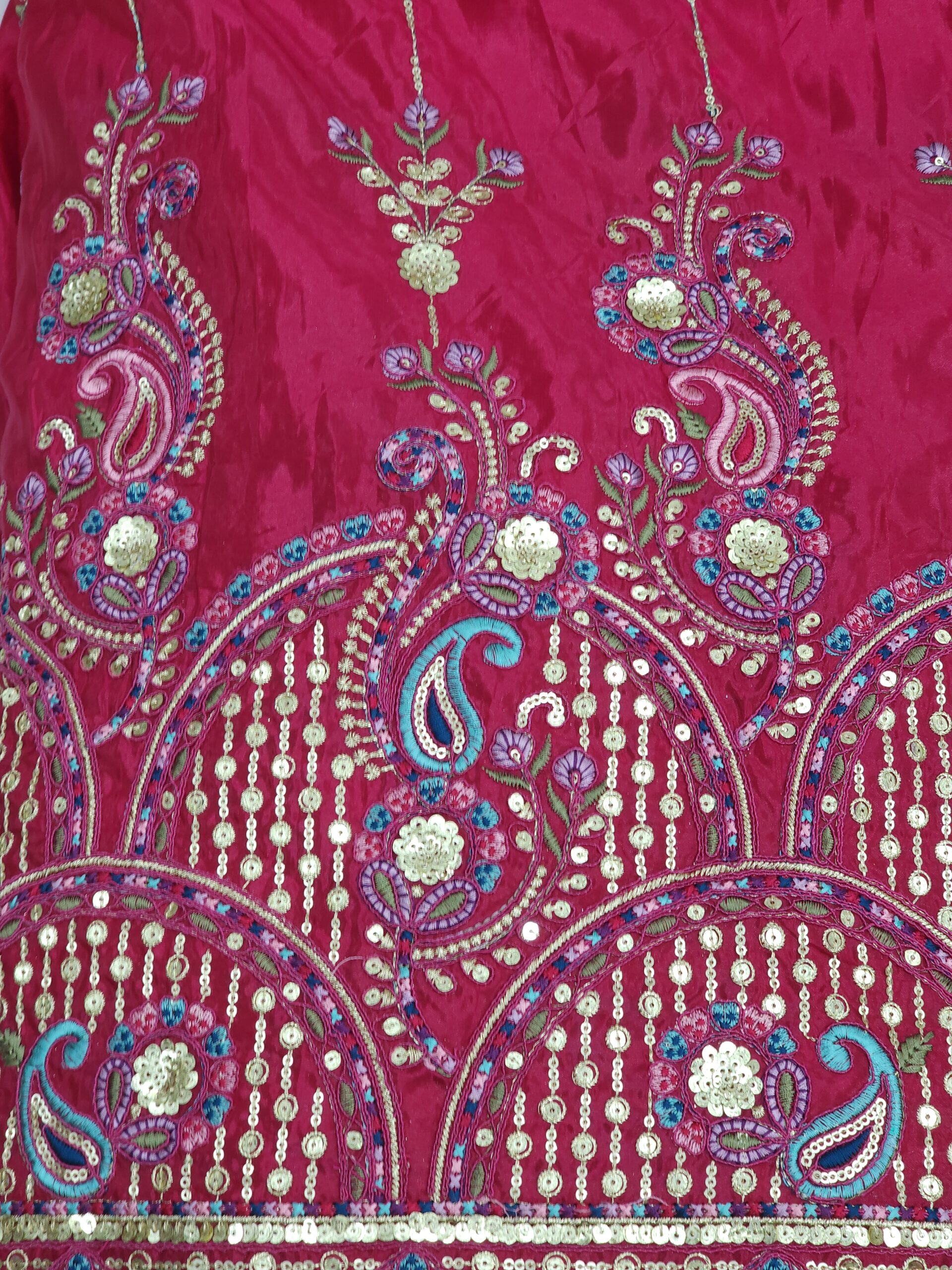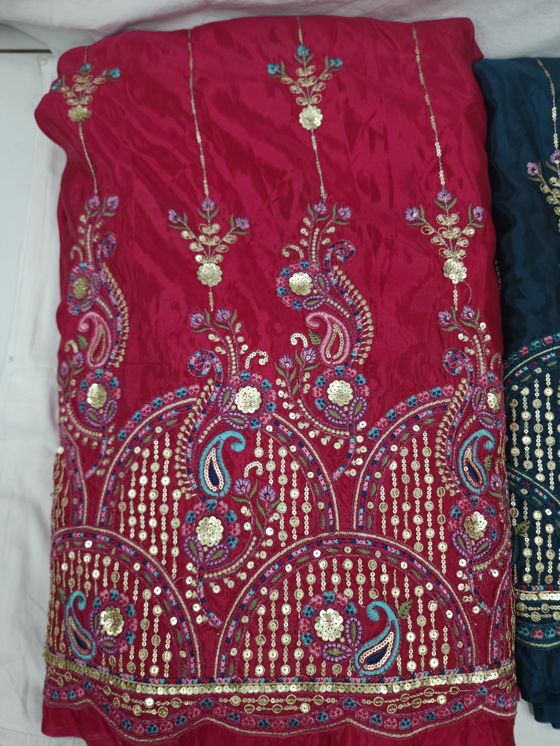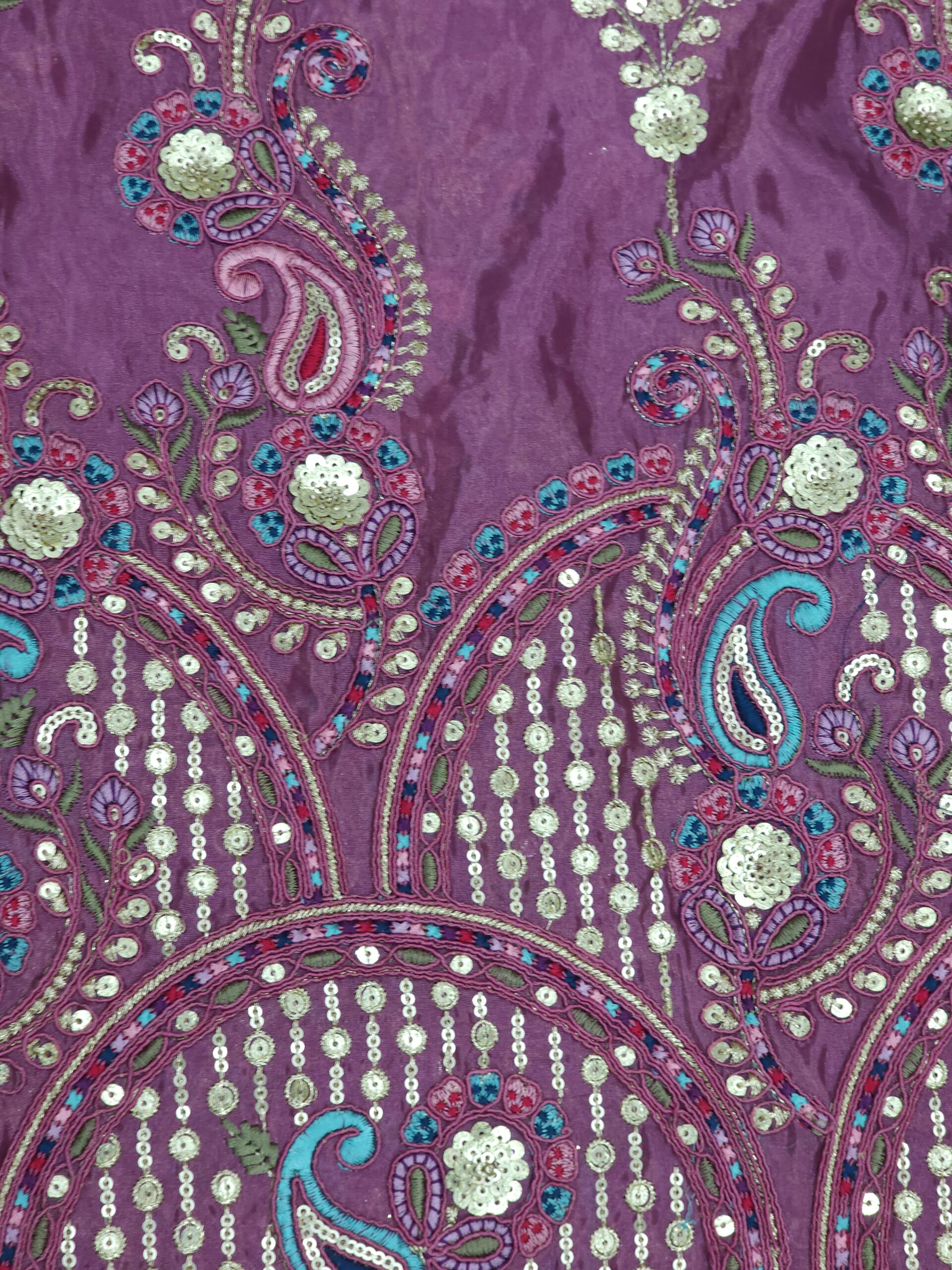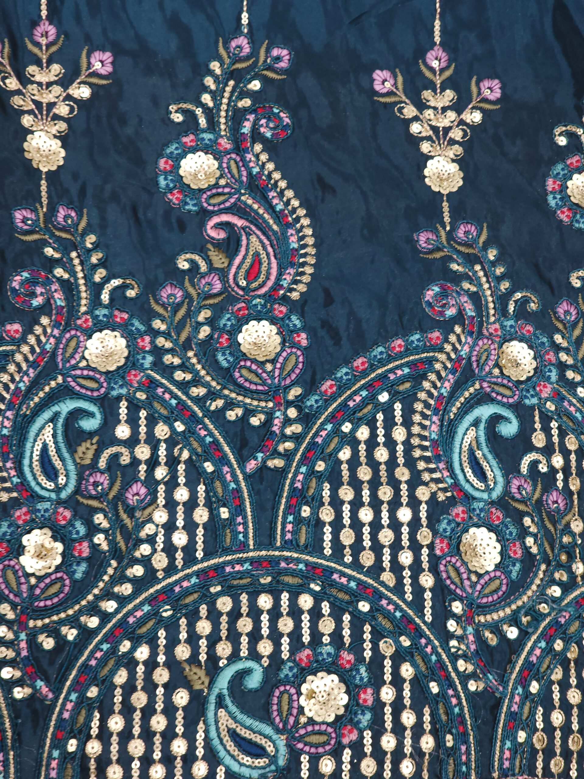 Elegant Paisley & Floral Embroidered Fabric with Heavy Sequin Work