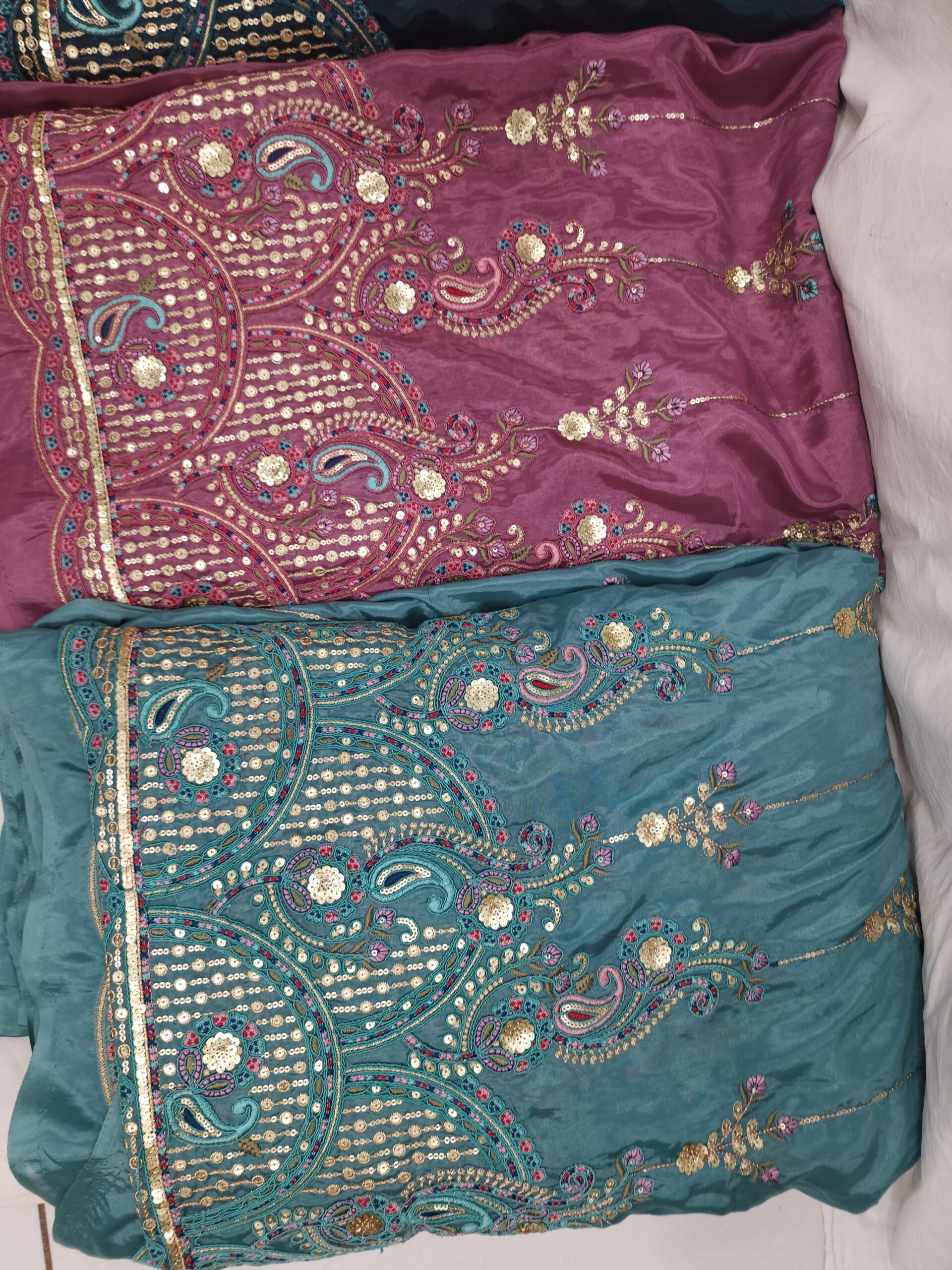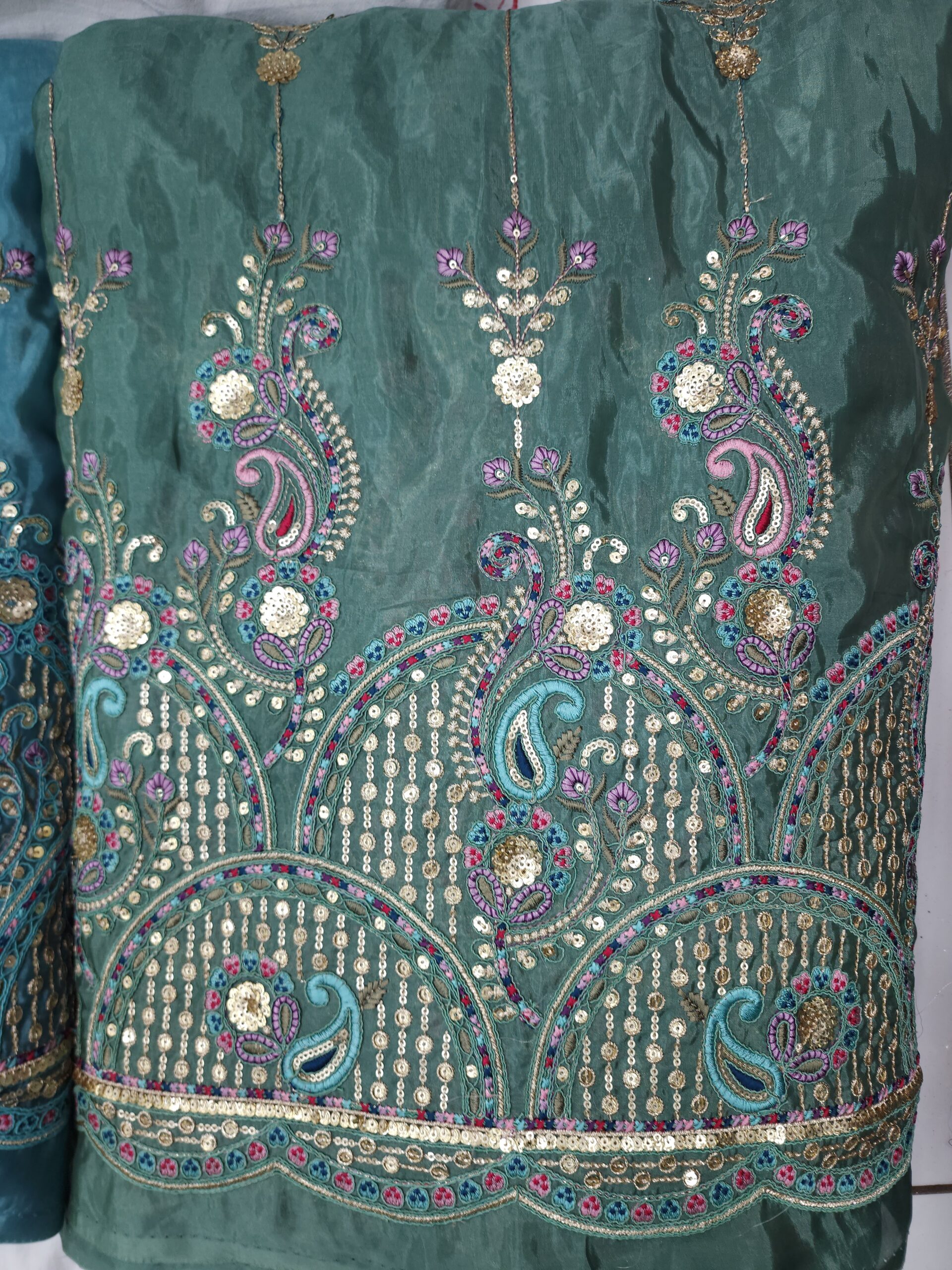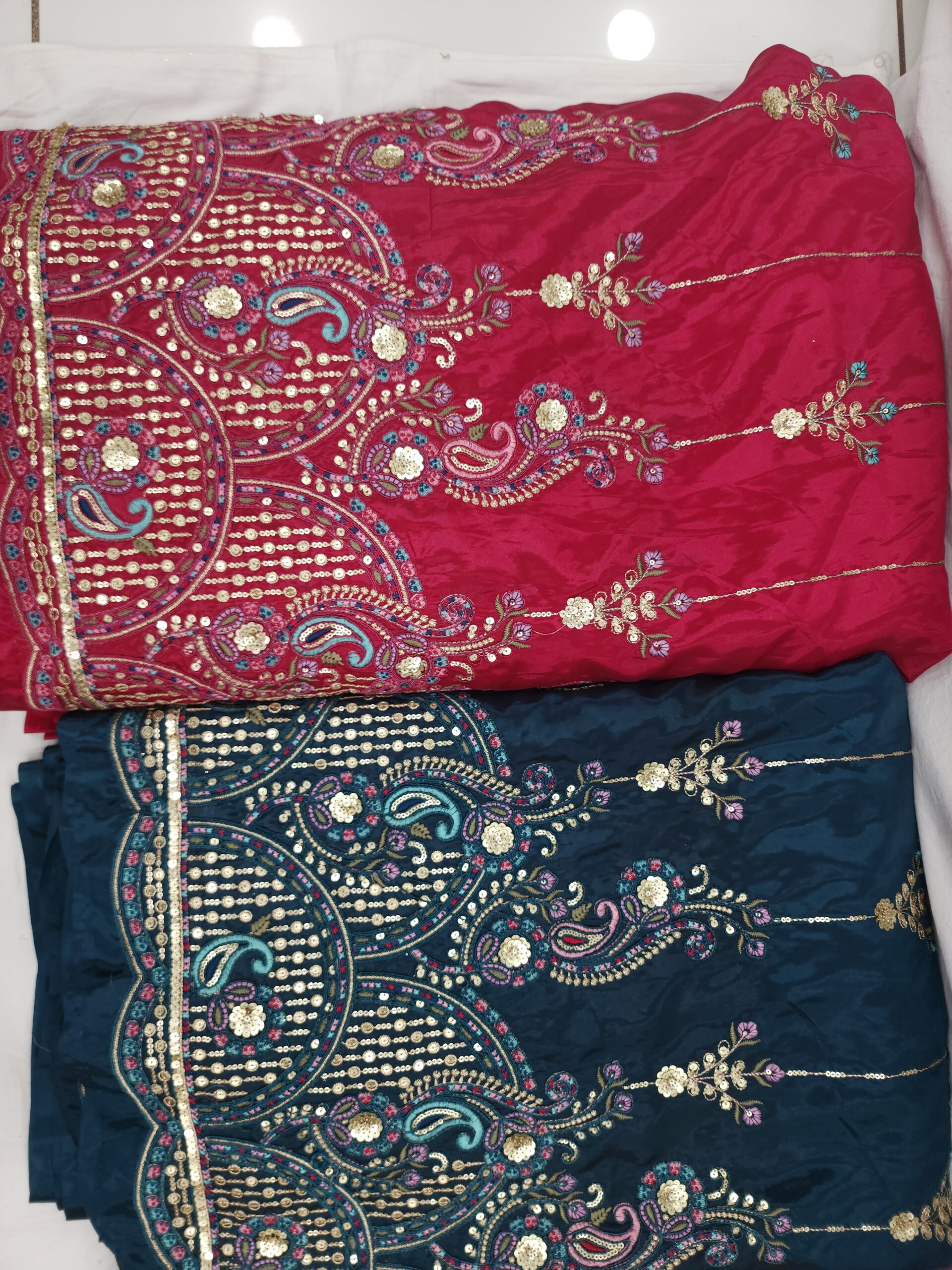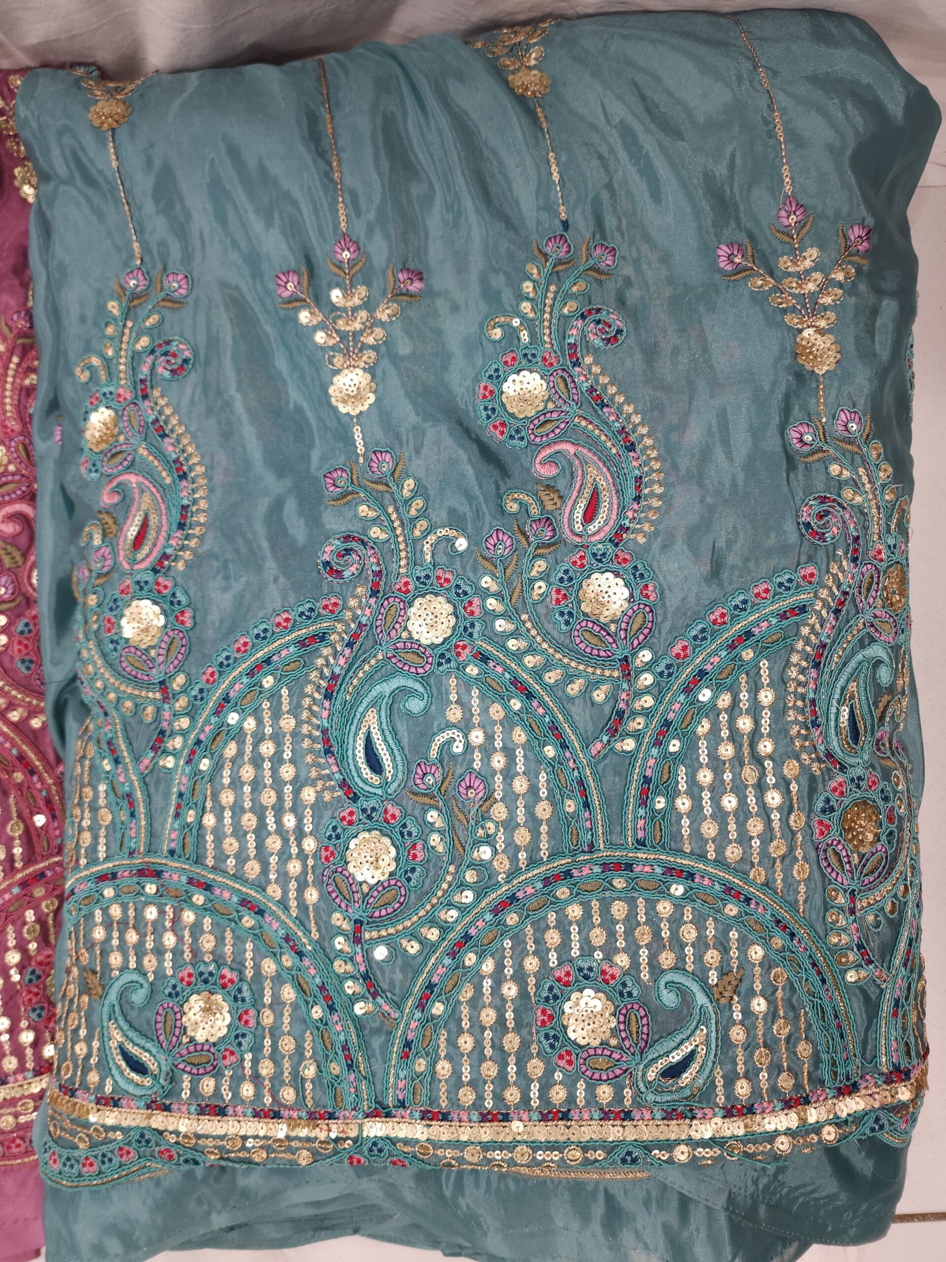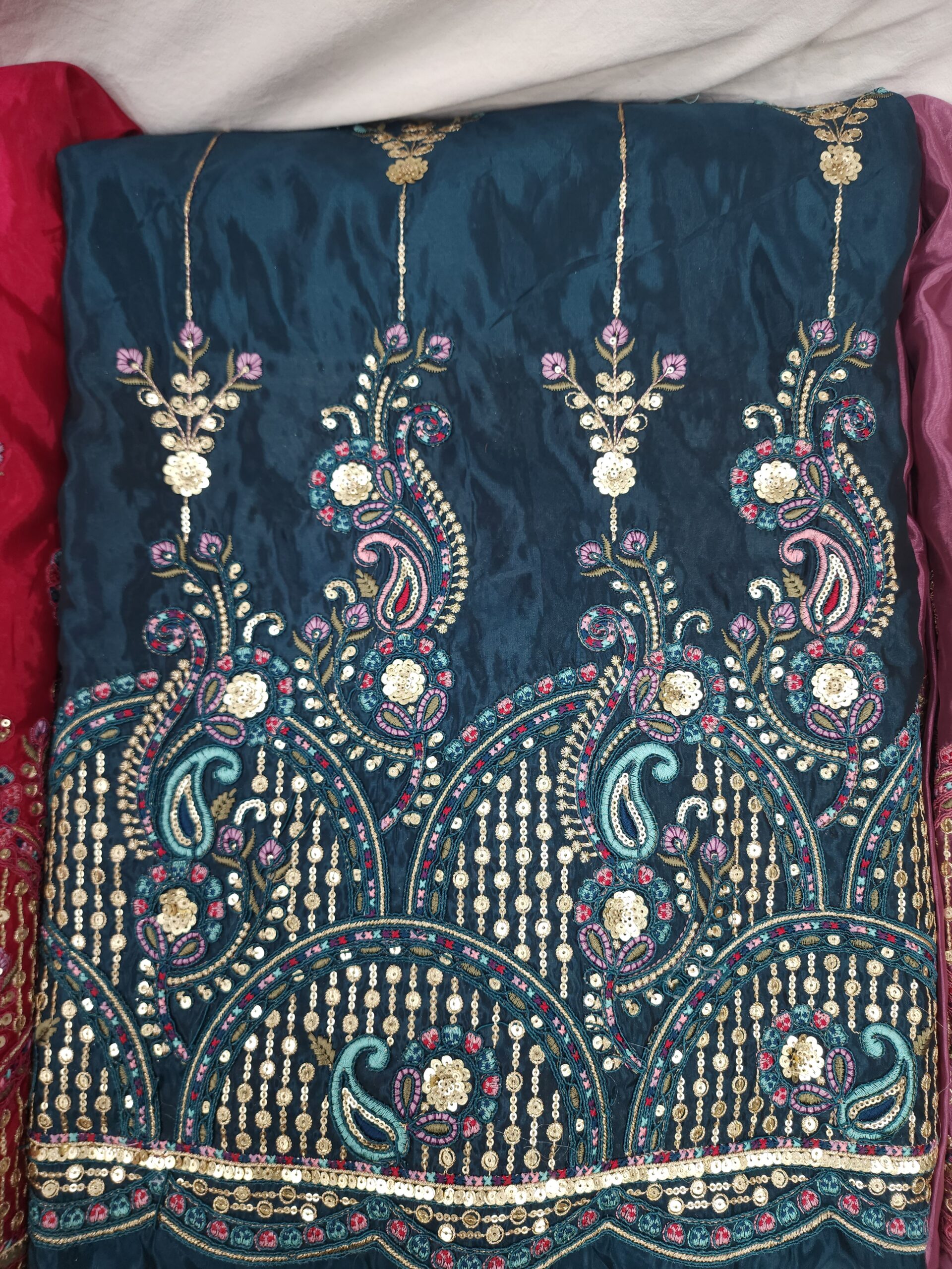 Elegant Paisley & Floral Embroidered Fabric with Heavy Sequin Work