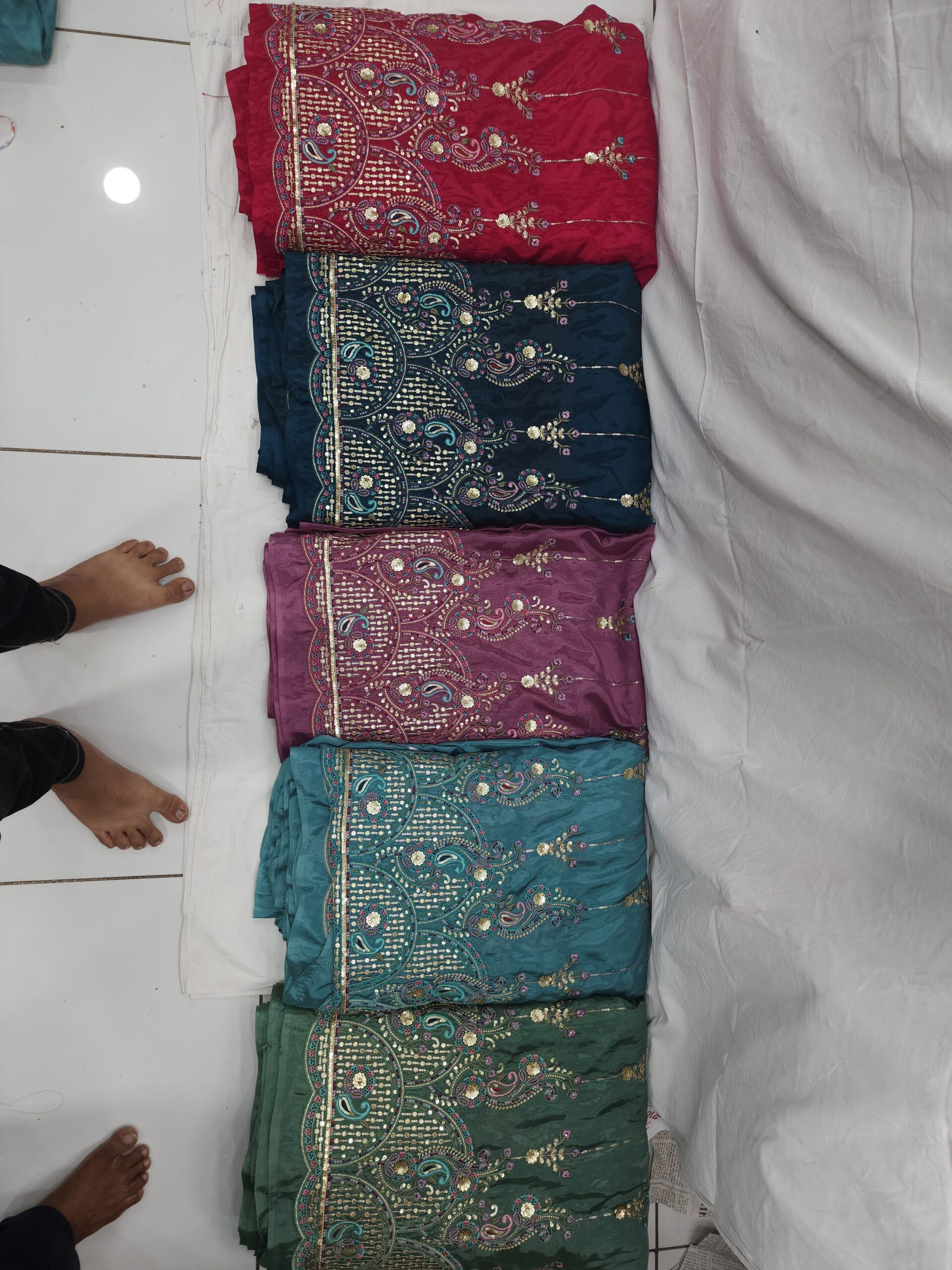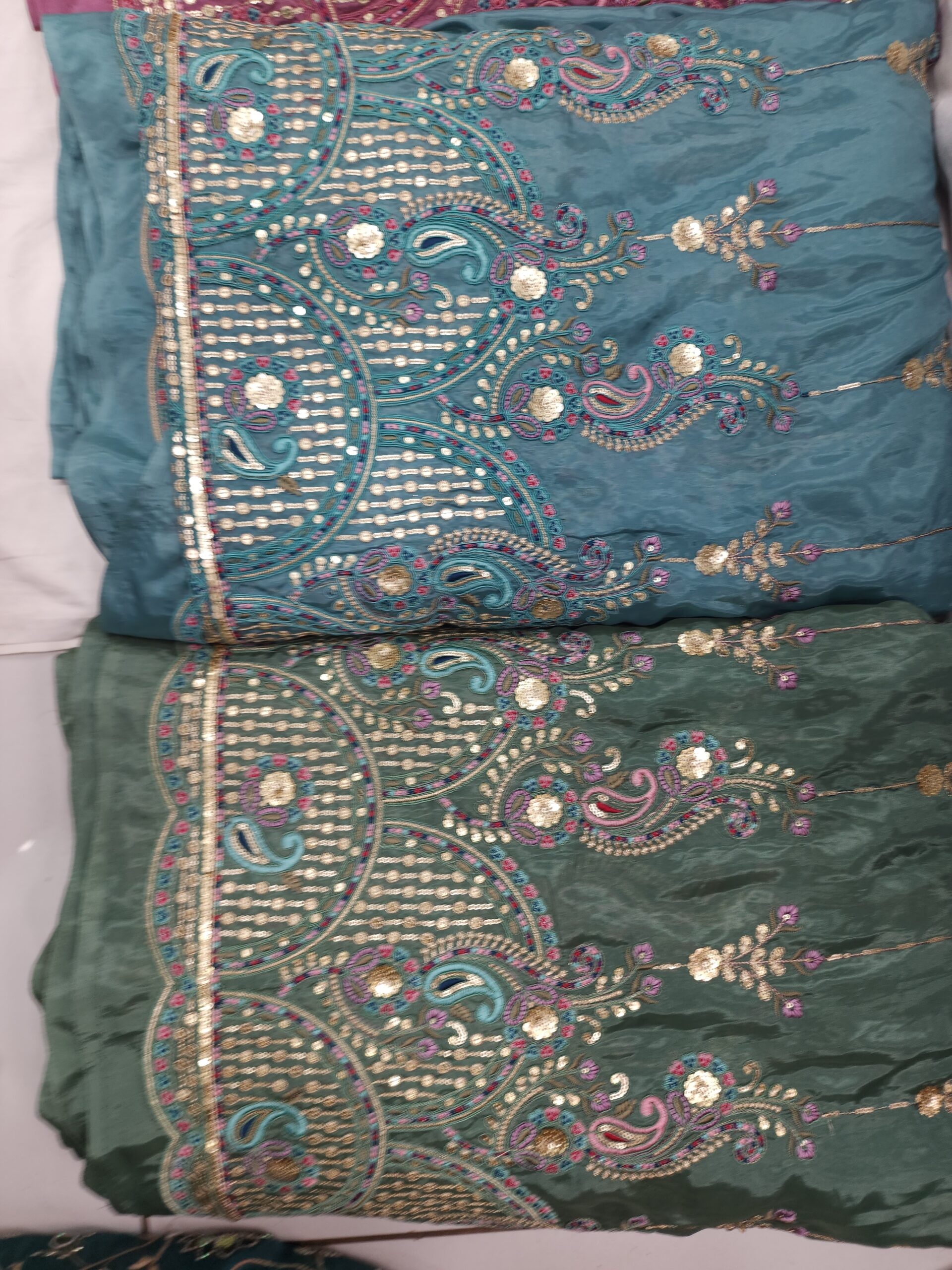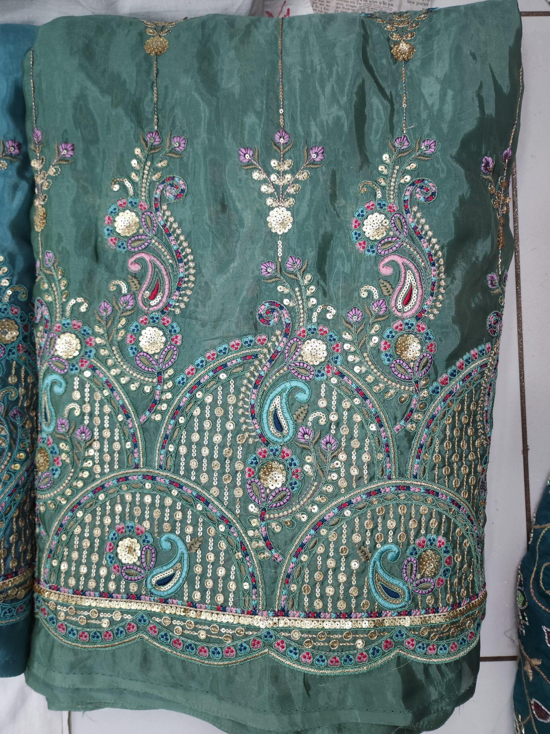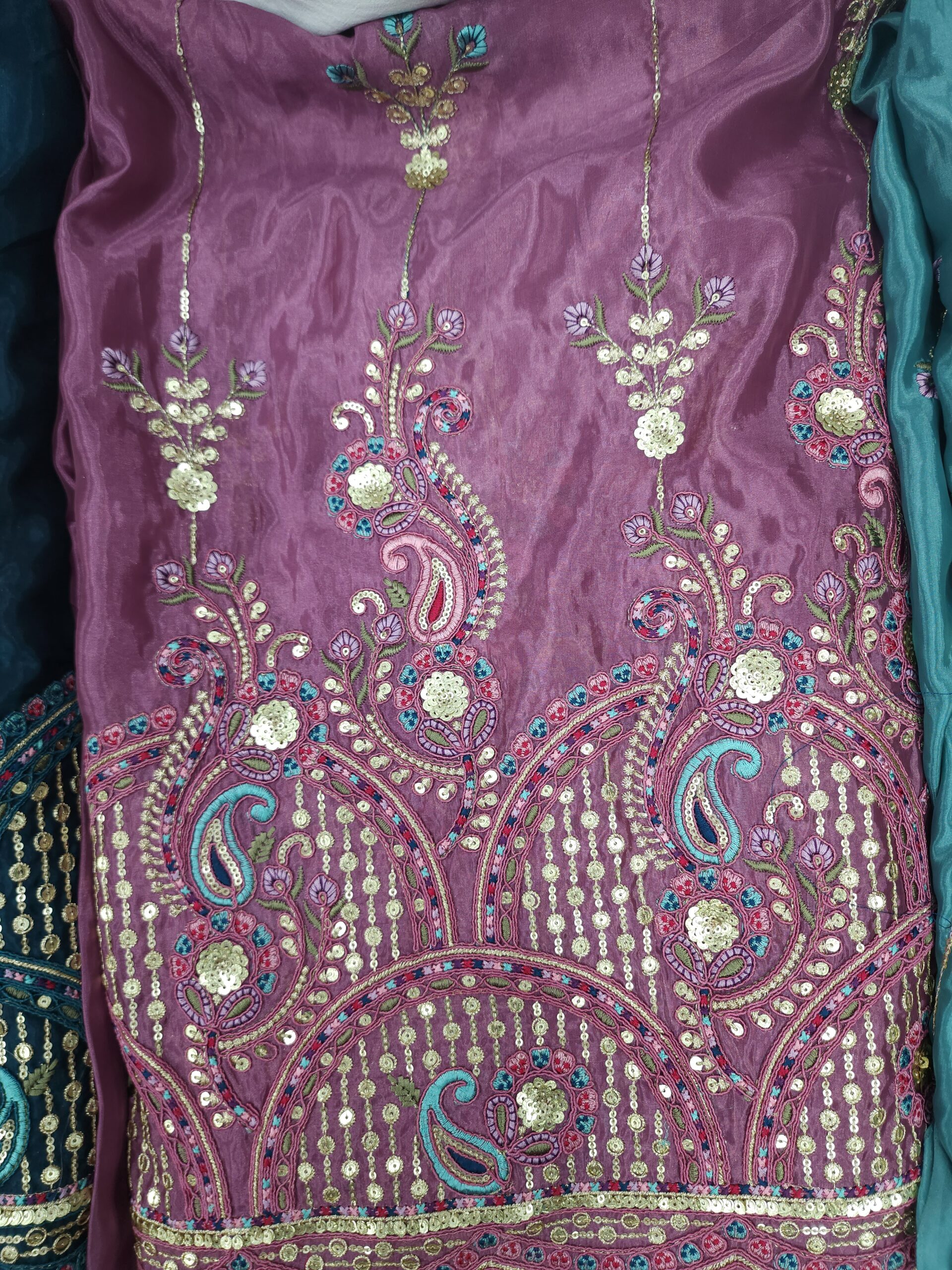 Elegant Paisley & Floral Embroidered Fabric with Heavy Sequin Work