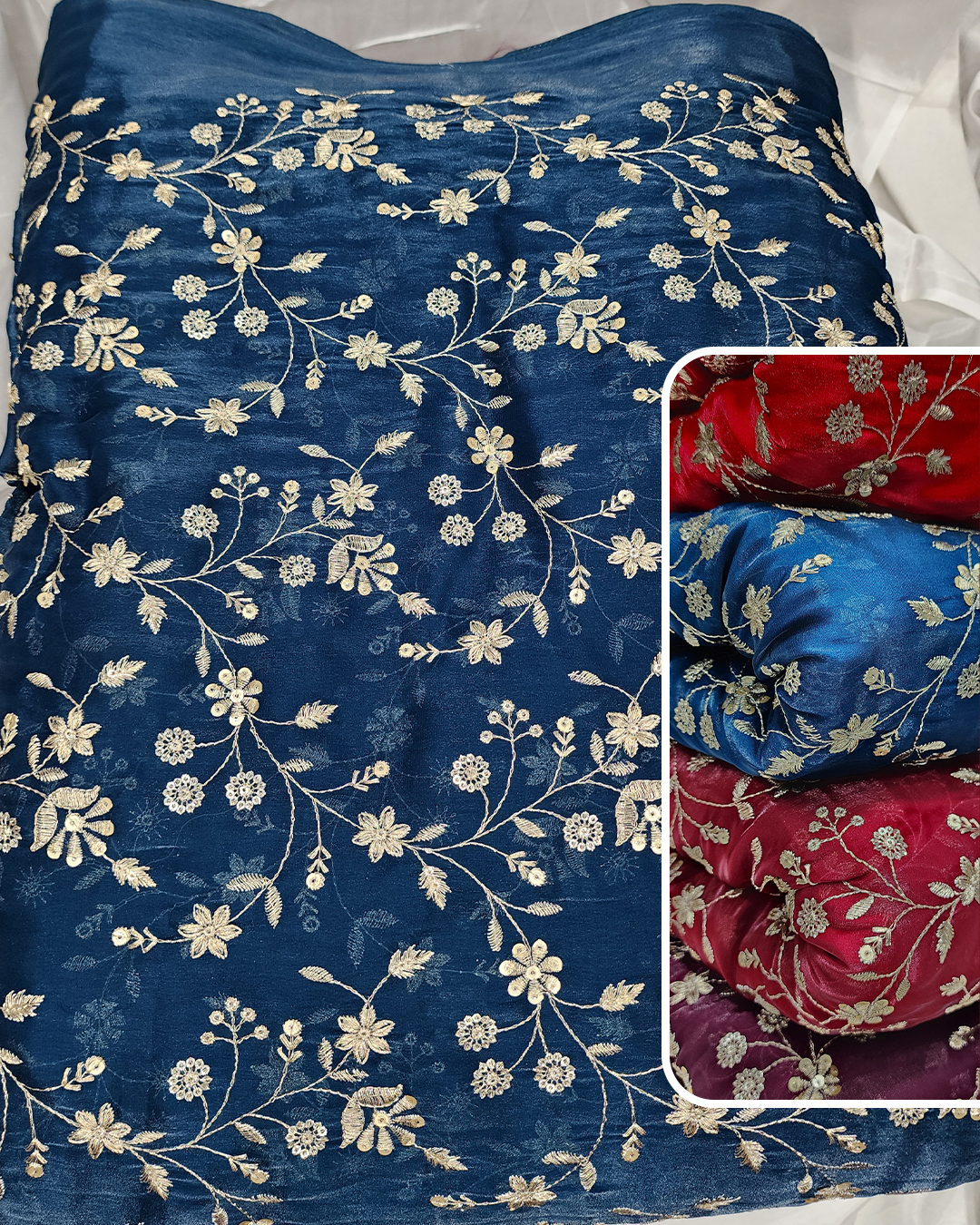 Elegant Printed Blue Fabric – Premium Cotton/Silk Blend with Traditional Prints
