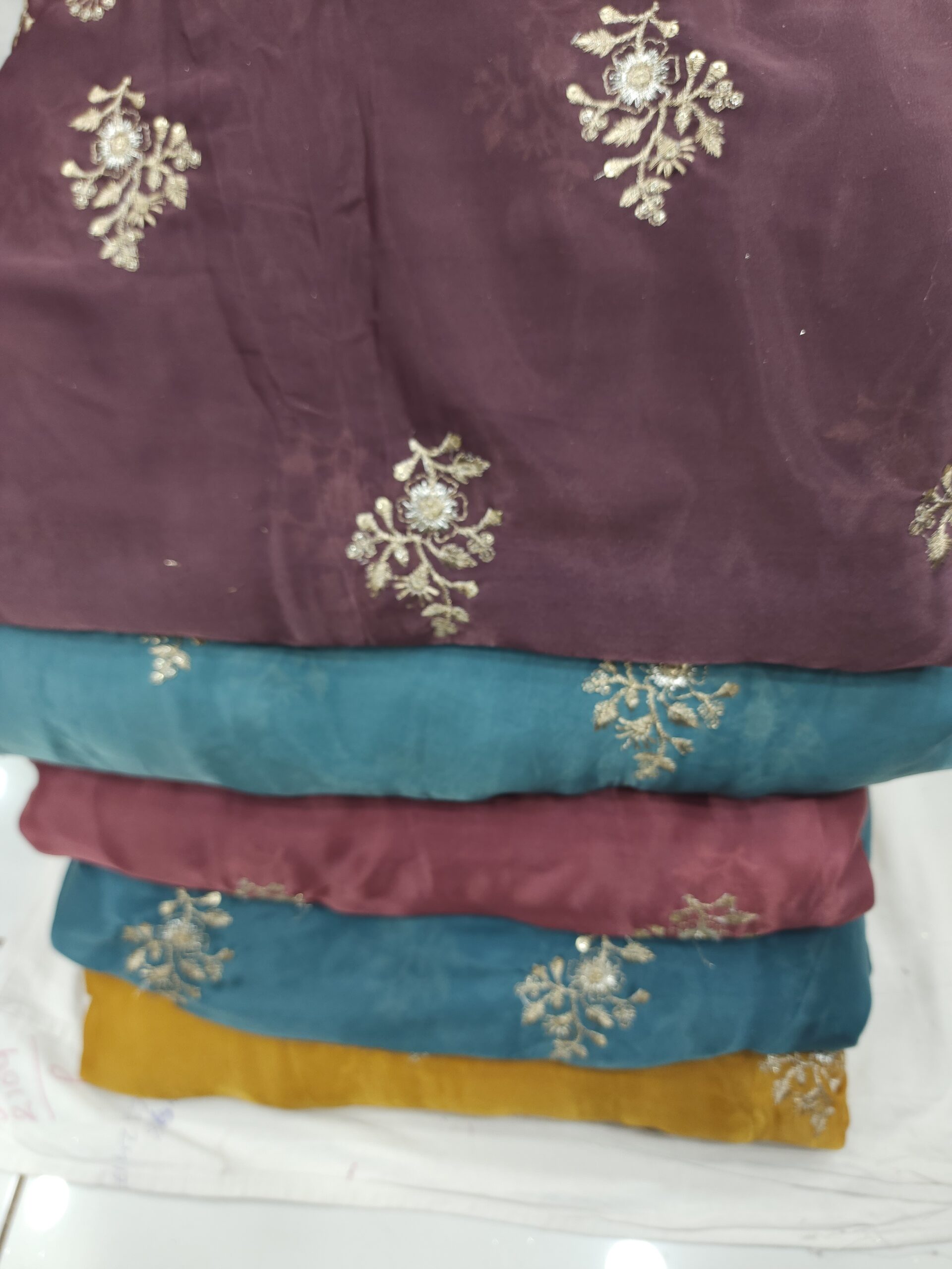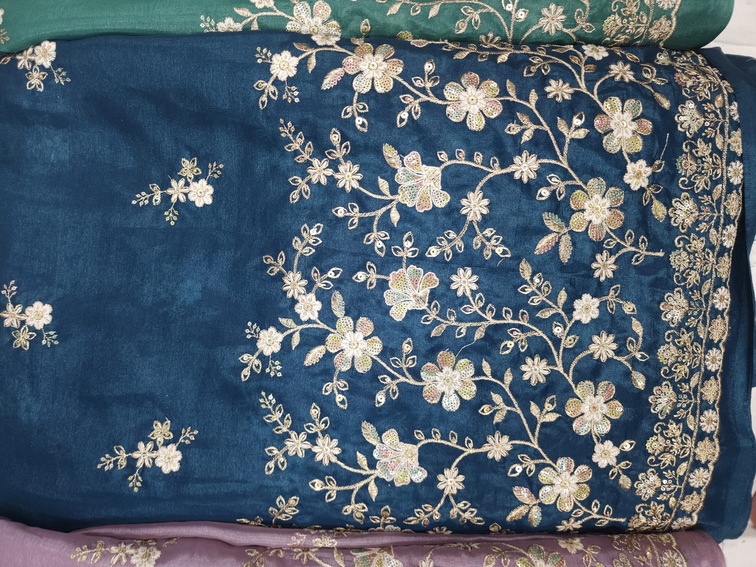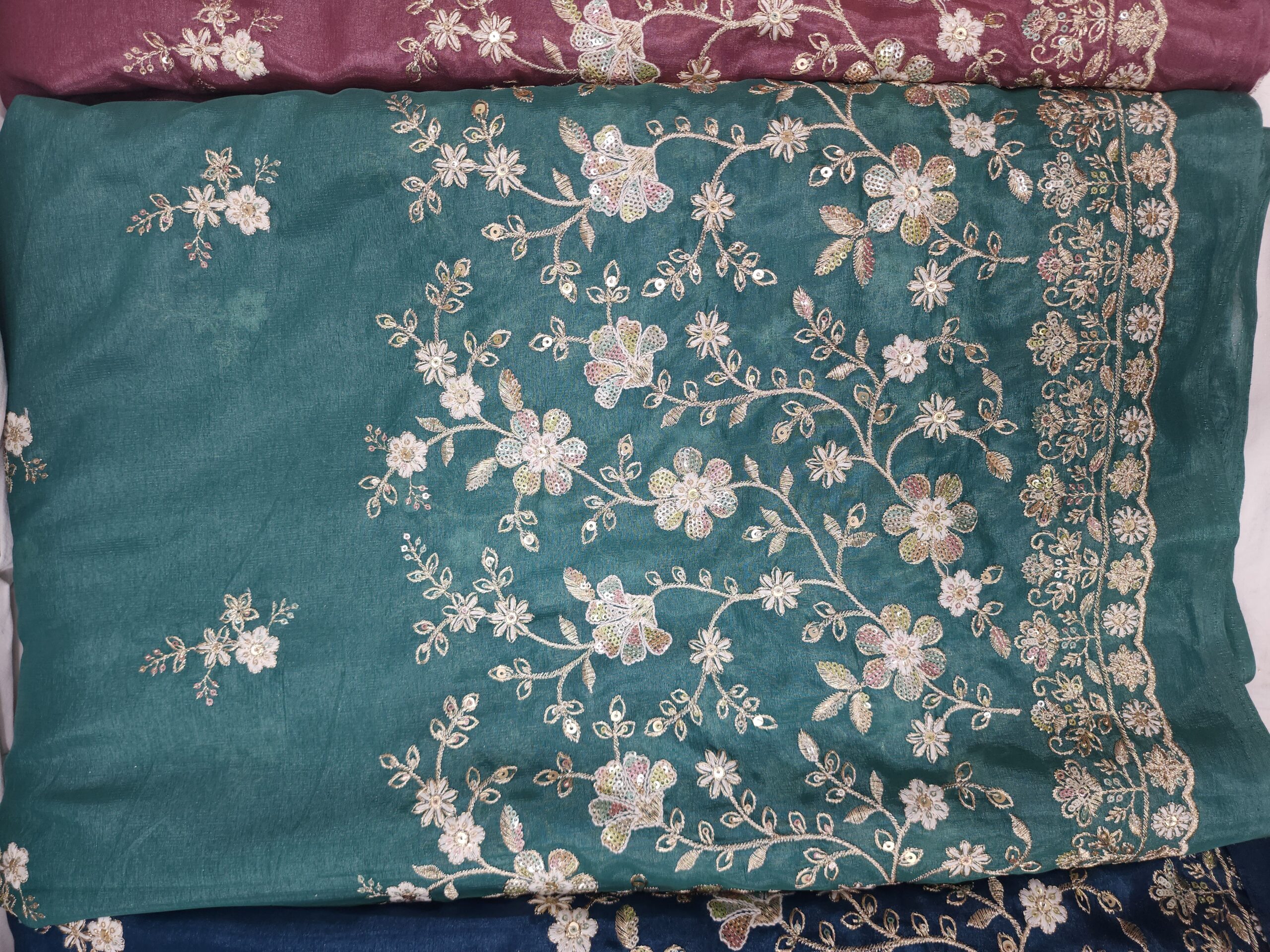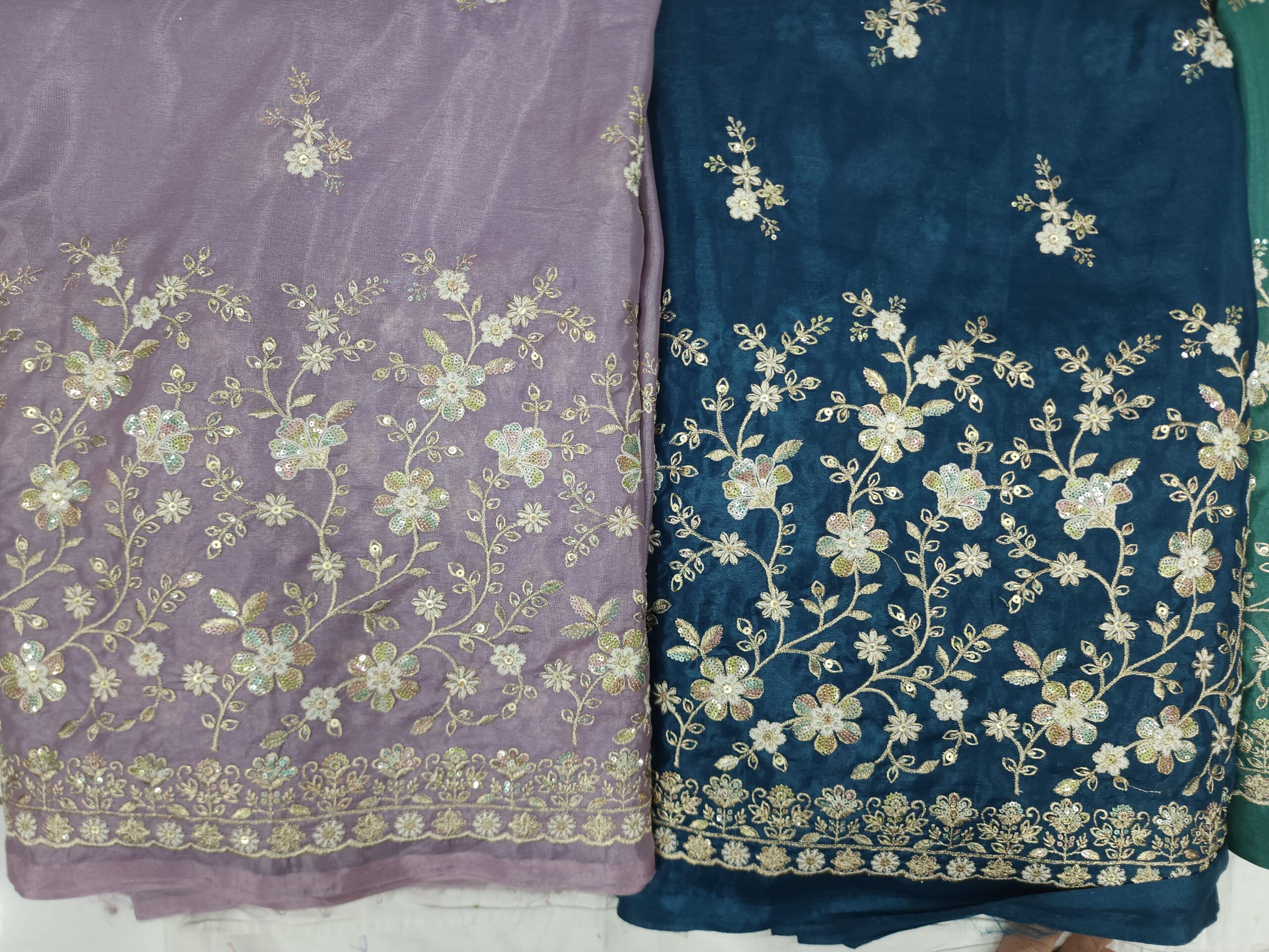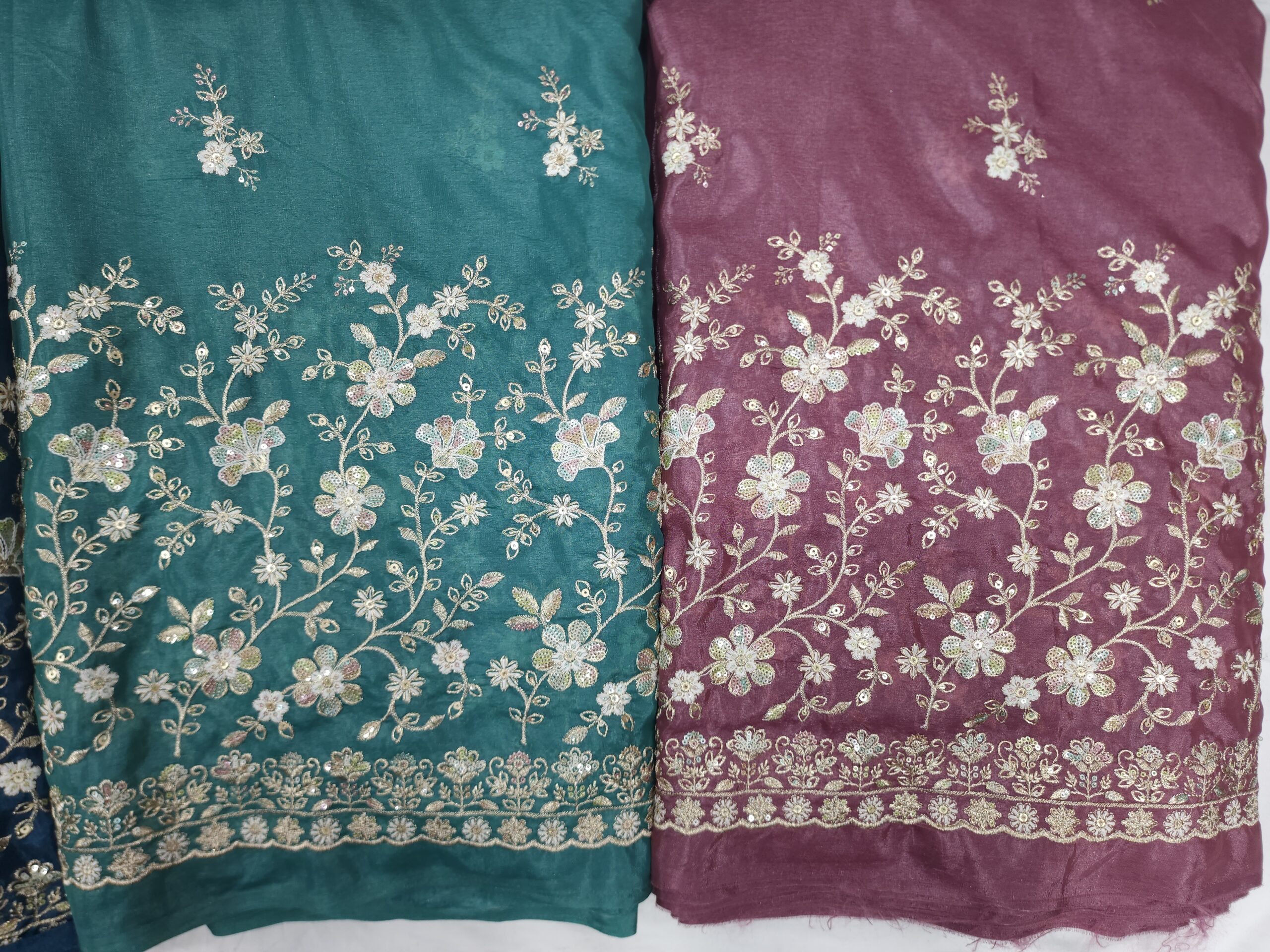 Grace Motif Embroidered Fabric – 5 Elegant Shades