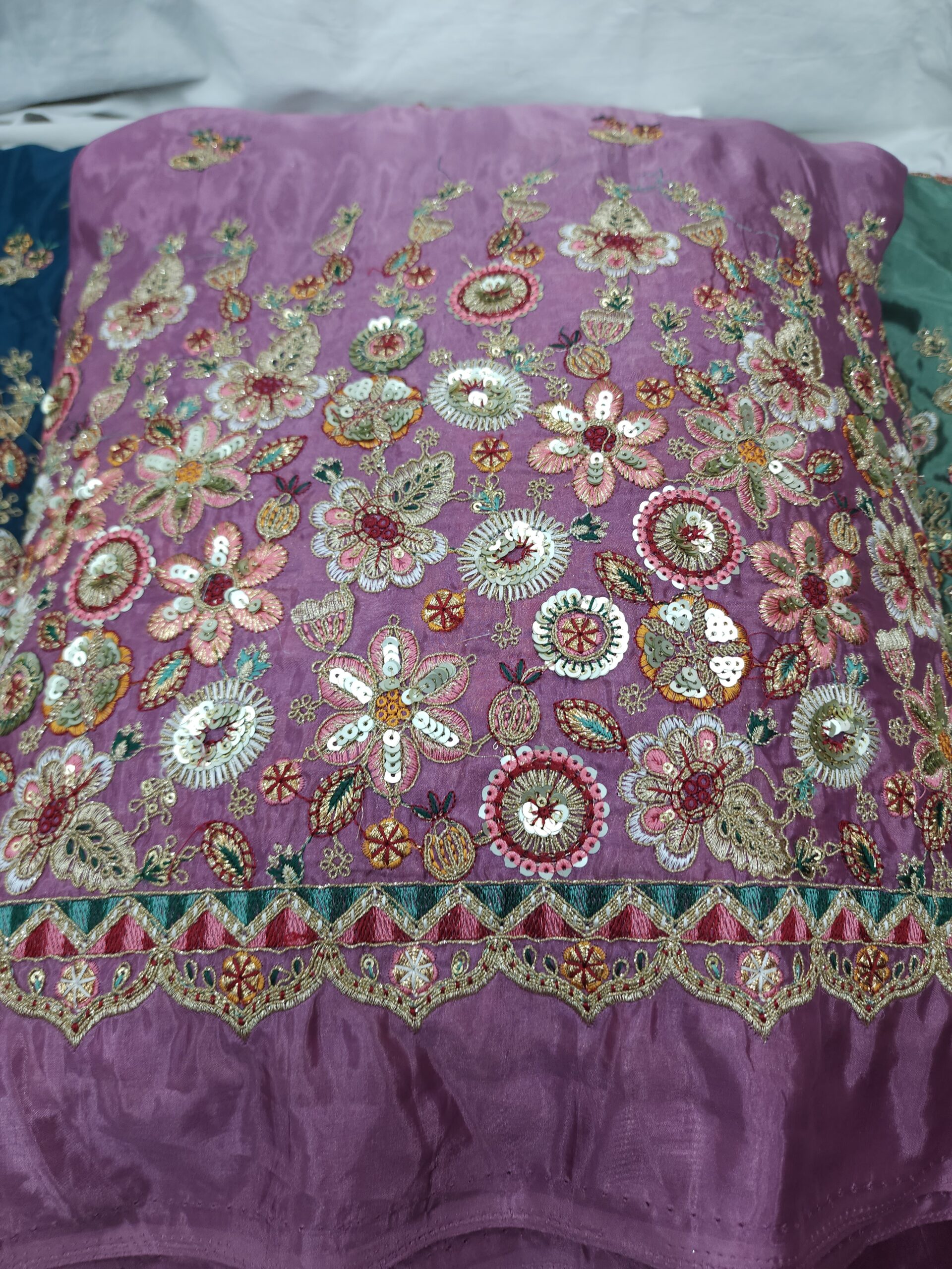 1 review for Heavy Floral Embroidered Silk Blend Fabric with Sequin Work