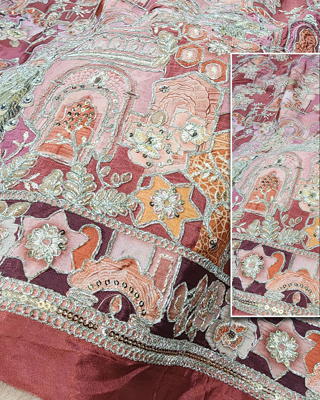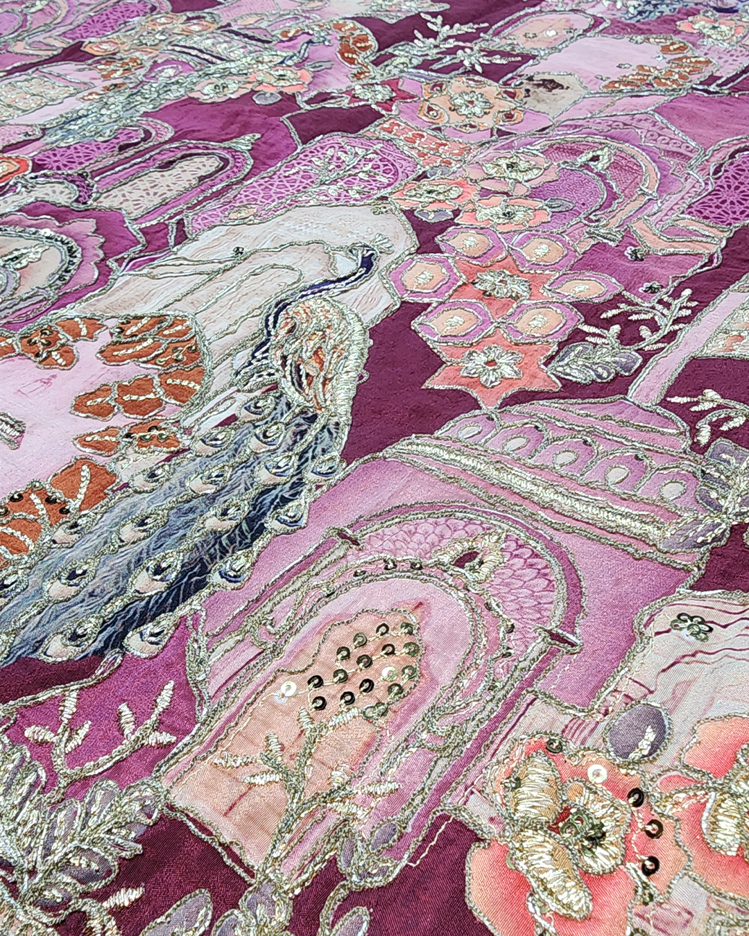 Majestic Peacock Embroidered Velvet – 2 Luxury Shades Fabric