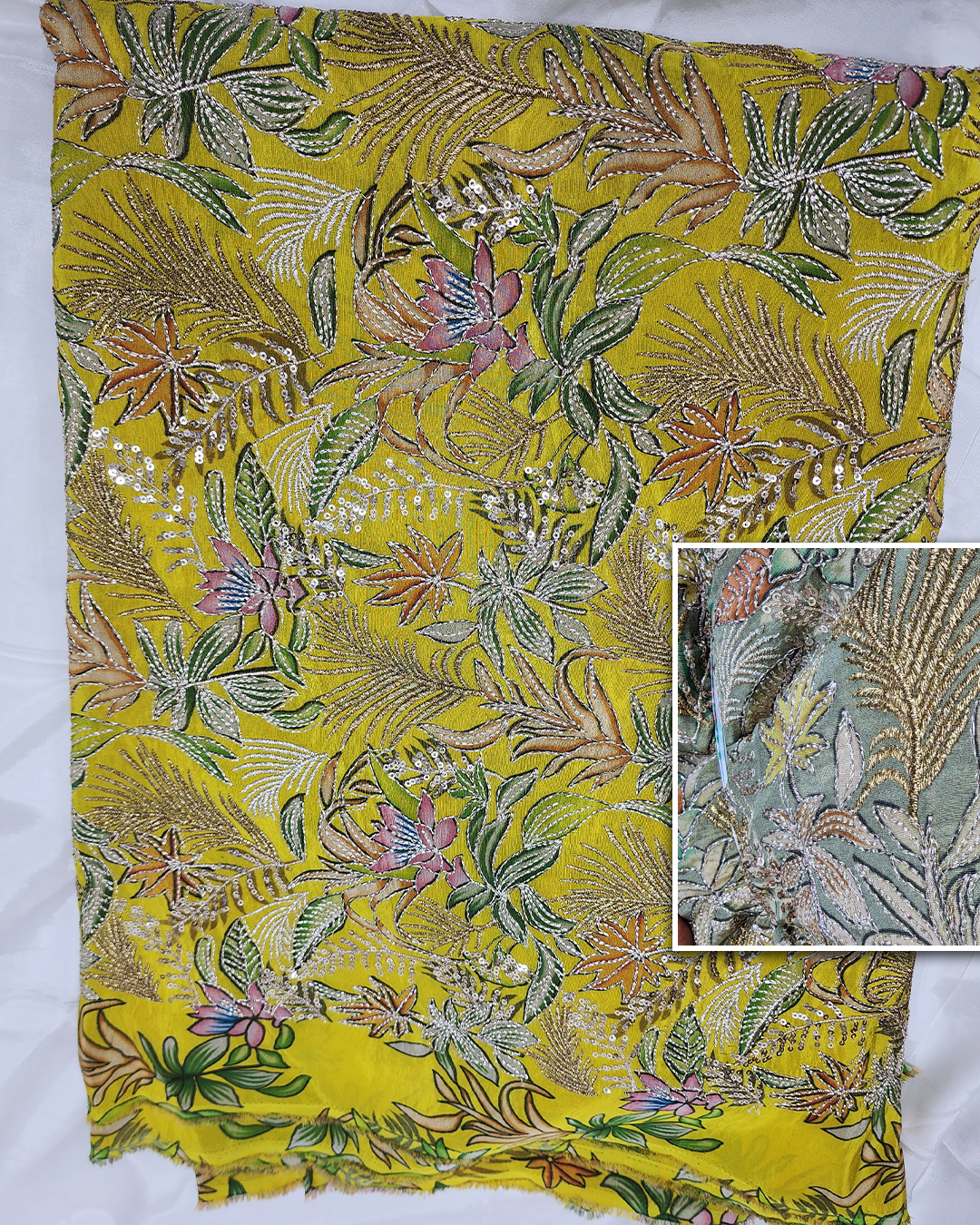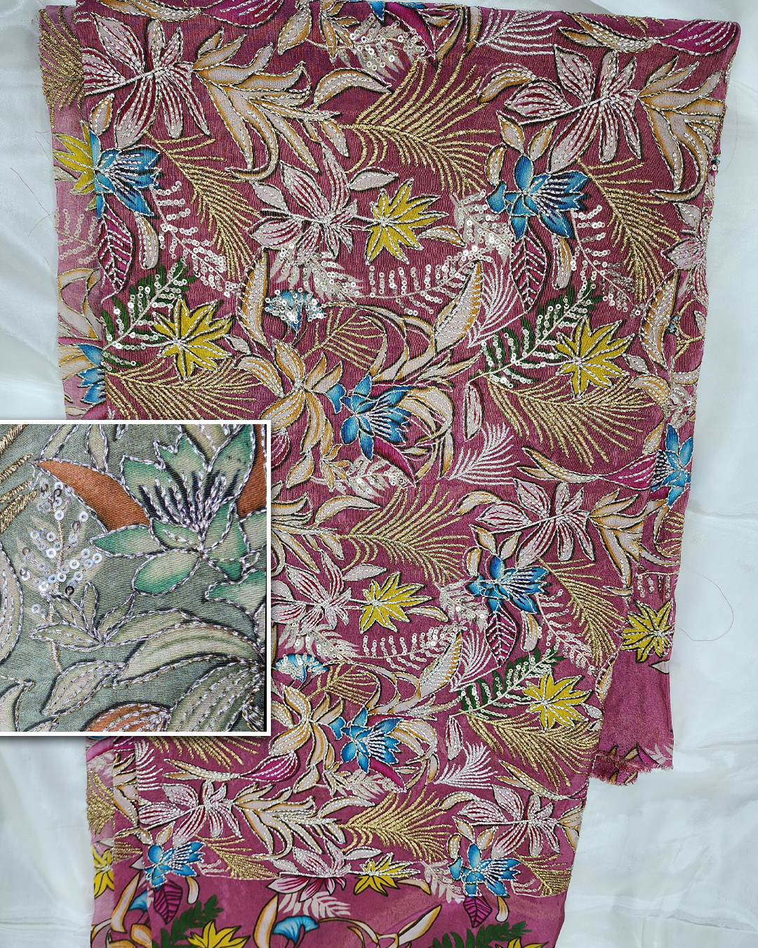 Be the first to review “Tropical Bloom Embroidered Fabric – 4 Stylish Hues”